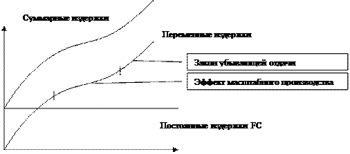 Эффект масштабного производства означает, что каждая дополнительная единица продукции требует все меньшего прироста переменных ресурсов.
