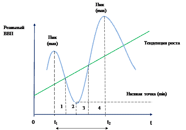 Экономический цикл(деловой цикл) – периодическое колебания экономической активности общества, промежуток времени между фазами подъема деловой активности.
