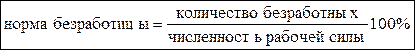 4. Занятость. Данный показатель отражает соотношение между численностью взрослого трудоспособного населения, имеющего работу и численностью безработных в данной экономической системе. Основным показателем для исчисления безработицы и для оценки занятости является норма безработицы: