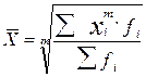 где Хi – варианта (значение) осредняемого признака или серединное значение интервала, в котором измеряется варианта; m – показатель степени средней;