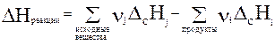 Тепловой эффект реакции равен разности между суммой теплот сгорания (DcH) исходных веществ и суммой теплот сгорания продуктов реакции (с учетом стехиометрических коэффициентов).