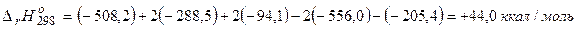 Решение. Выполним расчеты для 250С и давления 1 атм, приняв условие постоянства давления в ходе реакций. В этом случае тепловой эффект должен быть равен изменению энтальпии системы:
