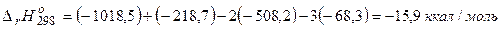 Пример 1.1 Рассчитать тепловые эффекты двух следующих реакций: