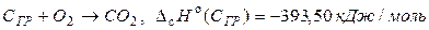 Пример 1.2 Рассчитать тепловой эффект полиморфного превращения 1 моль графита в алмаз при стандартных условиях, если известны стандартные теплоты сгорания графита и алмаза при Т = 298,15 К и Р = 1атм.