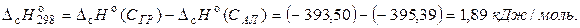 Следовательно, процесс превращения графита в алмаз при стандартных условиях (если бы он имел место) должен был бы происходить с поглощением небольшого количества тепла.