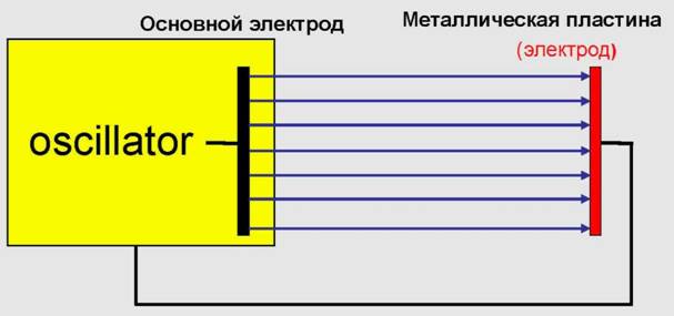 - с помощью осциллятора генерируется электростатическое поле на электродах;