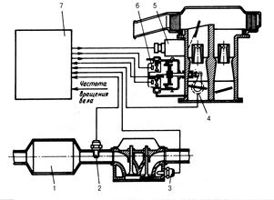 1 - трехкомпонентный каталитический нейтрализатор; 2 - датчик кислорода; 3,4 - датчики соответственно температуры охлаждающей жидкости и положения дроссельной заслонки; 5 - привод воздушной заслонки; 6 - электропневматический привод дроссельной заслонки первичной камеры; 7 - блок управления