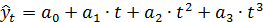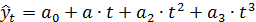 Для полинома третьей степени первые приросты будут полиномами второй степени, вторые приросты будут линейной функцией времени, а третьи приросты, рассчитываемые по формуле