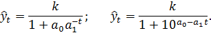 При определении параметров кривых роста, имеющих асимптоты (модифицированная экспонента, кривая Гомперца, логистическая кривая), различают два случая. Если значение асимптоты k известно заранее, то путем несложной модификации формулы и последующего логарифмирования определение параметров сводят к решению системы нормальных уравнений, неизвестными которой являются логарифмы параметров кривой.