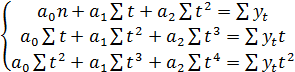составляют на основе метода наименьших квадратов систему нормальных уравнений, аналогичную системе для полинома первой степени. Решая эту систему, находят логарифмы параметров, а затем и сами параметры модели.
