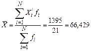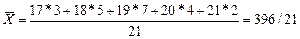 Средний возраст должен представлять собой результат равномерного распределения общего (суммарного) возраста всех студентов. Общий (суммарный) возраст всех студентов, согласно исходной информации табл. 3, можно получить как сумму произведений значений признакав каждой группе Xi, на число студентов с таким возрастом fi (частоты). Получим формулу (11):