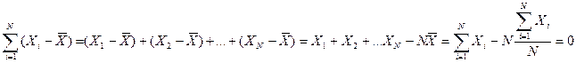 1. Сумма отклонений индивидуальных значений признака от его среднего значения равна нулю. Доказательство[6]: