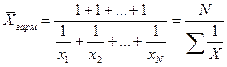 Таким образом, средняя гармоническая взвешенная применяется тогда, когда неизвестны действительные веса f, а известно w=Xf. В тех случаях, когда вес каждого варианта w=1, то есть индивидуальные значения X встречаются по 1 разу, применяется формула средней гармонической простой (16):