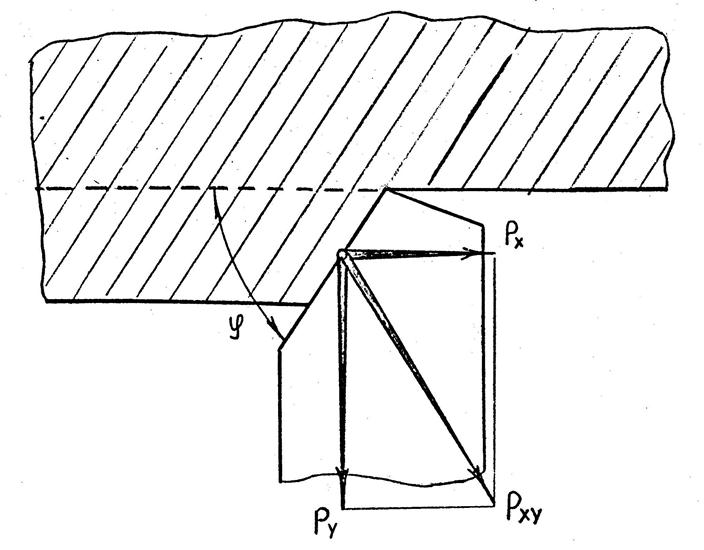 Силы Ру и Px являются проекциями горизонтальной составляющей Pху по оси X и Y (рис. 32.). Поэтому увеличение угла j приводит к увеличению силы Pх и уменьшению силы Py (риc. 33.).