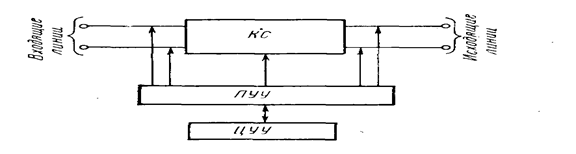 Укрупненная структурная схема квазиэлектронной АТС мало отличается от схемы обычной АТС (рис. 32). Она состоит из трех основных частей: коммутационной системы (КС), центрального управляющего устройства (ЦУУ) и периферийных управляющих устройств (ПУУ).