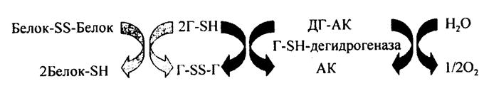 Г– SH - восстановленный глютатион; Г–SS–Г - окисленный глютатион; АК — аскорбиновая кислота; ДГ–АК – дегидроаскорбиновая кислота; белок — клейковинные белки в тесте