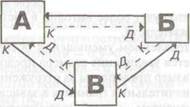 Рассматриваемое предприятие «А» является дебитором по отношению к предприятию «В» и имеет обязательства по отношению к предприятию «Б». В то же время предприятие «Б» - дебитор по отношению к предприятию «А» и имеет обязательства по отношению к предприятию «В». Предприятие «В» является дебитором предприятия «Б» и имеет обязательства перед
