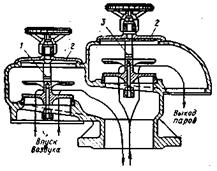 Дыхательный клапан (рисунок 10) предназначен для регулирования давления газовоздушных паров в резервуаре в процессе подачи или отбора нефти, при колебании температуры в течение суток. При повышении давления внутри резервуара клапан 3 поднимается, и лишний газ выходит в атмосферу, а при понижении - открывается клапан 1 и в резервуар поступает воздух.