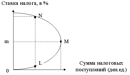 налоговыми поступлениями. Его концепция интерпретируется “кривой Лаффера” -