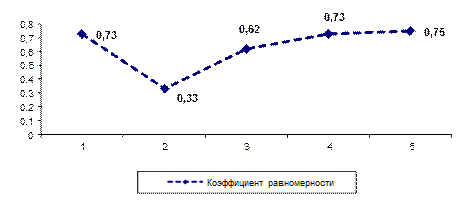 Рис. 4. Динамика коэффициента равномерности выпуска продукции