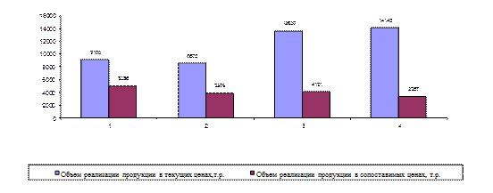 Таким образом, несмотря на общую тенденцию увеличения объемов реализации продукции в текущем уровне цен, в сопоставимых ценах наблюдается снижение данного показателя.