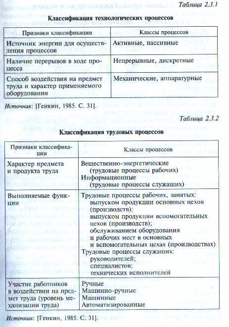 В целом схемы классификации технологических и трудовых процессов представлены в табл. 3.1 и 3.2.