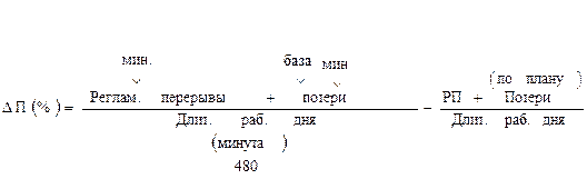 Также можно определить возможное повышение производительности труда в данном подразделении за счёт сокращения потерь рабочего времени.
