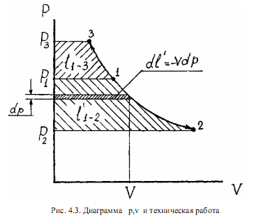Для анализа работы рабочего тела удобно пользоваться диаграммой p,v (рис. 4.2).
