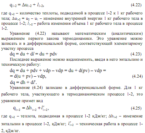 Если функция относится к М кг рабочего тела, то она обозначается прописной буквой, если к 1 кг – то строчной буквой. Внутренняя энергия – функция состояния закрытой термодинамической системы, определяемая тем, что ее приращение в любом процессе, происходящем в этой системе, равно сумме теплоты, сообщенной системе, и работы, совершенной над ней.