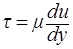 В простейшем случае прямолинейного слоистого течения связь между касательным напряжениям t и производной скорости u по нормали определяется законом вязкого трения Ньютона