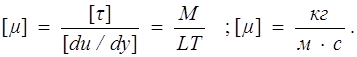 Коэффициент пропорциональности m в этой формуле называется динамическим коэффициентом вязкости. Этот коэффициент определяется свойствами жидкости и зависит от давления и температуры. Размерность динамического коэффициента вязкости