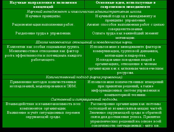 В основе развития современного менеджмента лежат достижения практически всех школ и подходов.