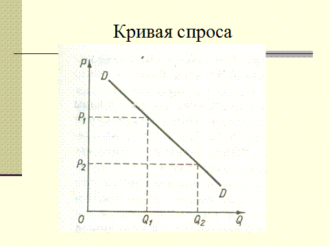 Закон спроса(его выражает функция спроса): фиксирует зависимость между изменением цены товара и изменением спроса на него(при прочих равных условиях). Обратная зависимость между объёмом спроса и величиной цены определяется следующими причинами: