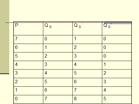 · Изменением цен на другие товары. Общий рост цены приводит к сокращению спроса на данный товар; а снижение этого уровня – к его росту. Спрос на данном отраслевом рынке предъявляют потребители с разной покупательной способностью, поэтому объём спроса на данный товар при разных ценах может быть различным при равных ценах(таблица 2): Qd=7- P; Qd= 8- P; Qd=5 –P.