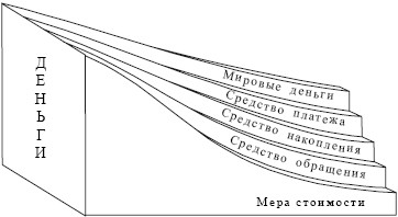 2. Функции денег.Использование денег в хозяйстве заключается в выполнении ими пяти взаимосвязанных функций (рис. 21).