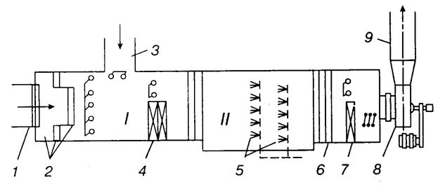 5 – форсунки увлажнителя воздуха; 6 – каплеуловитель; 7 – калорифер второй ступени;