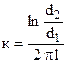 Если электроды выполнены не в виде пластин, а в виде коаксиальных цилиндров, то постоянная такой ячейки, см-1: