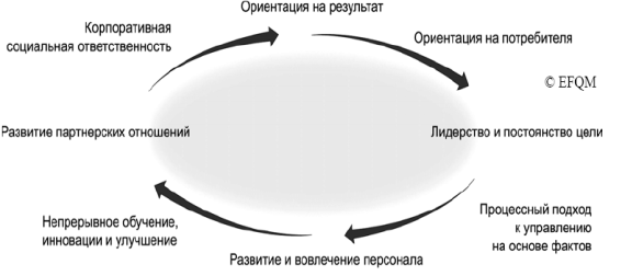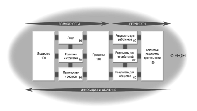 Модель совершенствования бизнеса, разработанная Европейским фондом управления качеством – «EFQM Excellence Model», существует уже с начала 1990-х годов и представляет обобщённую модель идеальной системы управления для организаций, ориентированных на устойчивое развитие и повышение конкурентоспособности. Модель основана на философии всеобщего качества управления и системном подходе к управлению, учитывающем интересы всех заинтересованных сторон организации или стейкхолдеров (Stakeholders), как они называются в англоязычной литературе. На основании модели EFQM во многих европейских странах с 1992 года проводятся конкурсы систем управления различных организаций. В Российской федерации первый подобный конкурс «Премия Правительства РФ в области качества» был проведен в 1997 году, при этом следует особо отметить то, что модель EFQM претерпела некоторые изменения при перенесении её на российскую почву с учётом нашего менталитета и особенностей русского языка.