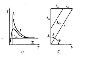 При включении на постоянное напряжение конденсатора, между электродами которого находится диэлектрик, через него протекает уменьшающийся со временем ток I = Iабс + Ιск (рис. 40, а).