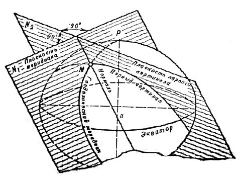 Рисунок 4 – Плоскость меридиана и плоскость первого вертикала