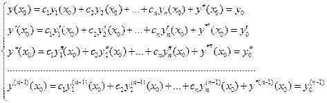 является общим решением уравнения (2). Т.е. общее решение линейного неоднородного уравнения есть сумма общего решения соответствующего однородного уравнения и частного решения исходного неоднородного уравнения.