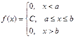 Определение. Непрерывная случайная величина имеет равномерноераспределение на отрезке [a, b], если на этом отрезке плотность распределения случайной величины постоянна, а вне его равна нулю.