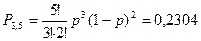 пяти были найдены выше по формуле Бернулли и равны соответственно: