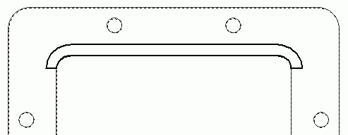 8. Теперь можно перейти к построению боковой стенки. Ее можно выполнить обычным выдавливанием на величину толщины стенок, просто заполнив материалом детали промежуток между задней и передней стенками корпуса. Эскиз операции выдавливания должен повторять контуры краев уже построенных стенок и фланца корпуса (рис. 3.76). Опорная плоскость эскиза – внутренняя торцевая грань фланца (вдоль его длинной стороны). Полагаю, вам будет несложно его построить.