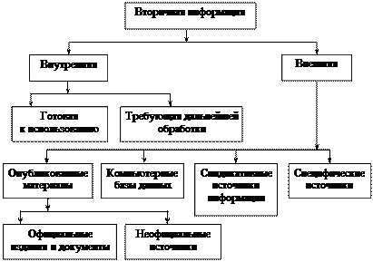 Вторичная информация подразделяется на внутреннюю и внешнюю.
