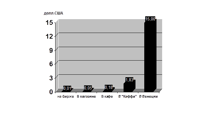 Сказанное хорошо иллюстрируется на рис.1.1, где указана стоимость 5 грамм кофе (сколько идет на одну чашечку) в зависимости от места приобретения.