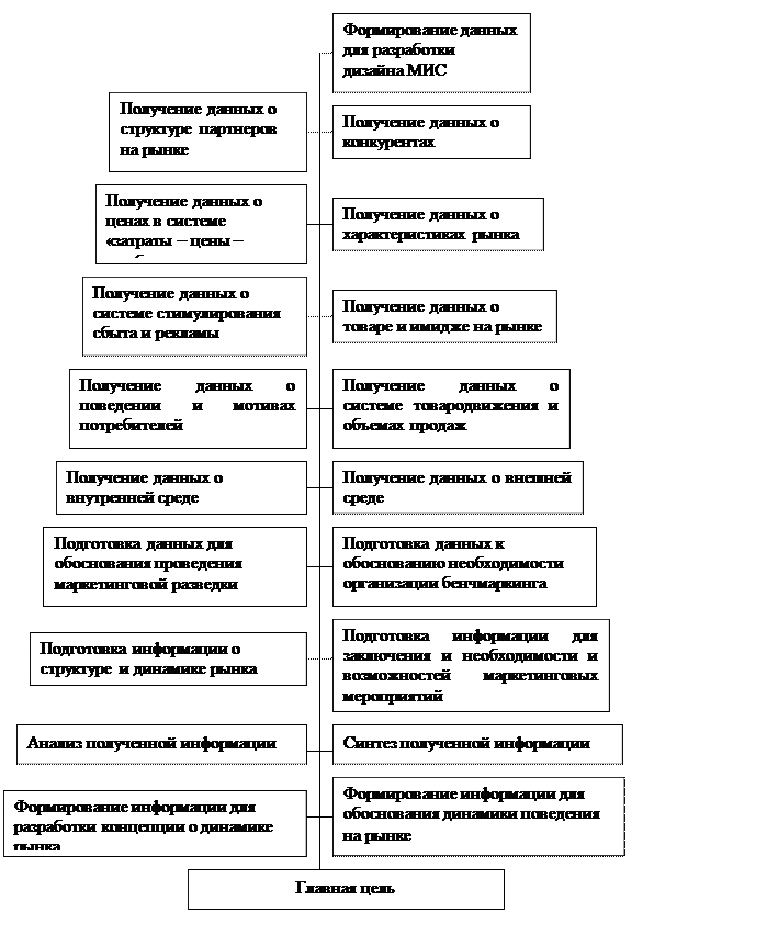 Главная цель распадается на цели и подцели маркетинговых исследований (см. рис. 1.2).
