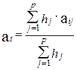 В общем случае групповая оценка (ai) каждого события (Ci) зависят от оценок этого события экспертами, а также степени компетентности (hj) экспертов. Степень компетентности (hj) эксперта учитывает его опыт и квалификацию и является основной характеристикой эксперта, которая используется при определении групповых оценок, т.е.