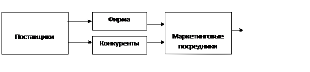 Микросредапредставлена внешними силами, имеющими непосредственное отношение к самой фирме и ее возможностям по удовлетворению нужд, потребностей и запросов потребителей. Это, во-первых, потребители, поставщики, маркетинговые посредники и конкуренты,а во-вторых, контактные аудитории фирмы,то есть любые группы, проявляющие интерес к фирме или оказывающие влияние на фирму они составляют внешнюю среду предприятия.