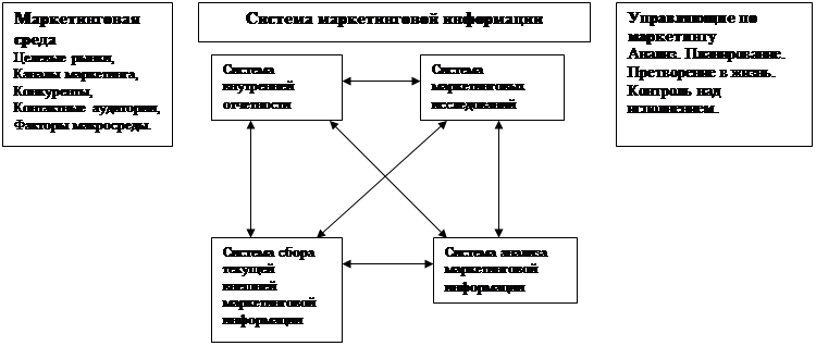 Ф. Котлера, подразумевающая четыре составляющие – систему внутренней отчетности, маркетинговое наблюдение (система внешней текущей информации), маркетинговое исследование и систему анализа информации. (Рис.3.2)